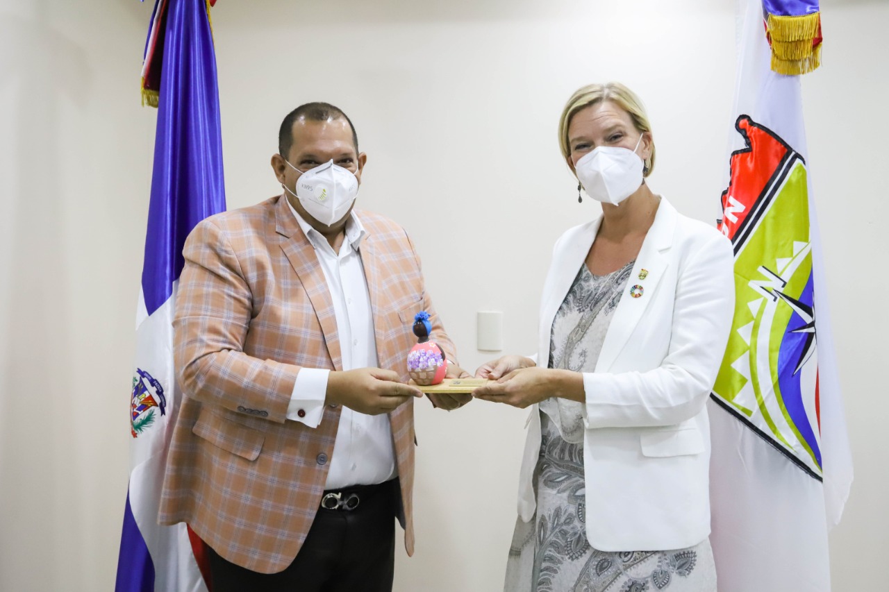 Santo Domingo Norte.-El alcalde de Santo Domingo Norte, Carlos Guzmán y la representante del Programa de las Naciones Unidas para el Desarrollo (PNUD) en la República Dominicana, Inka Mattila, sostuvieron un encuentro para analizar las políticas públicas implementadas por el ayuntamiento en materia medioambiental, seguridad ciudadana, violencia de género, reordenamiento territorial, desarrollo incluyente y sostenible, y de este modo, coordinar acciones conjuntas en el municipio.
