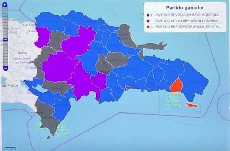 Ccon más del 50% de colegios electorales computados, el PRM domina las principales plazas del país ante el oficialista Partido de la Liberación Dominicana (PLD).